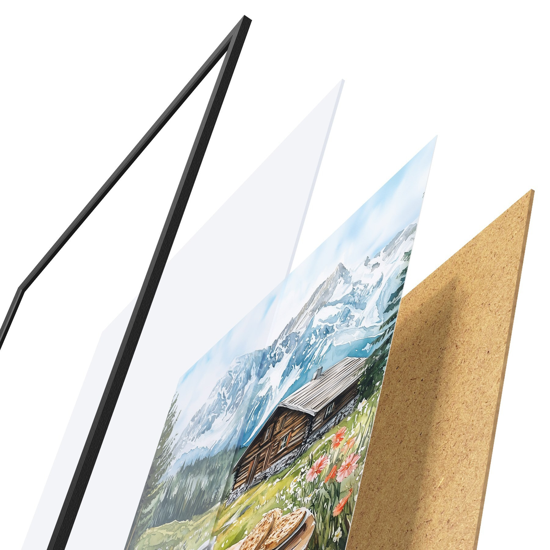 Plakāts sastāv no rāmja, pleksstikla, iespiestā attēla un skaidu plātnes pamatnes. Plakātu var uzreiz piekarināt pie sienas, pateicoties aizmugurē esošajiem stiprinājumiem.