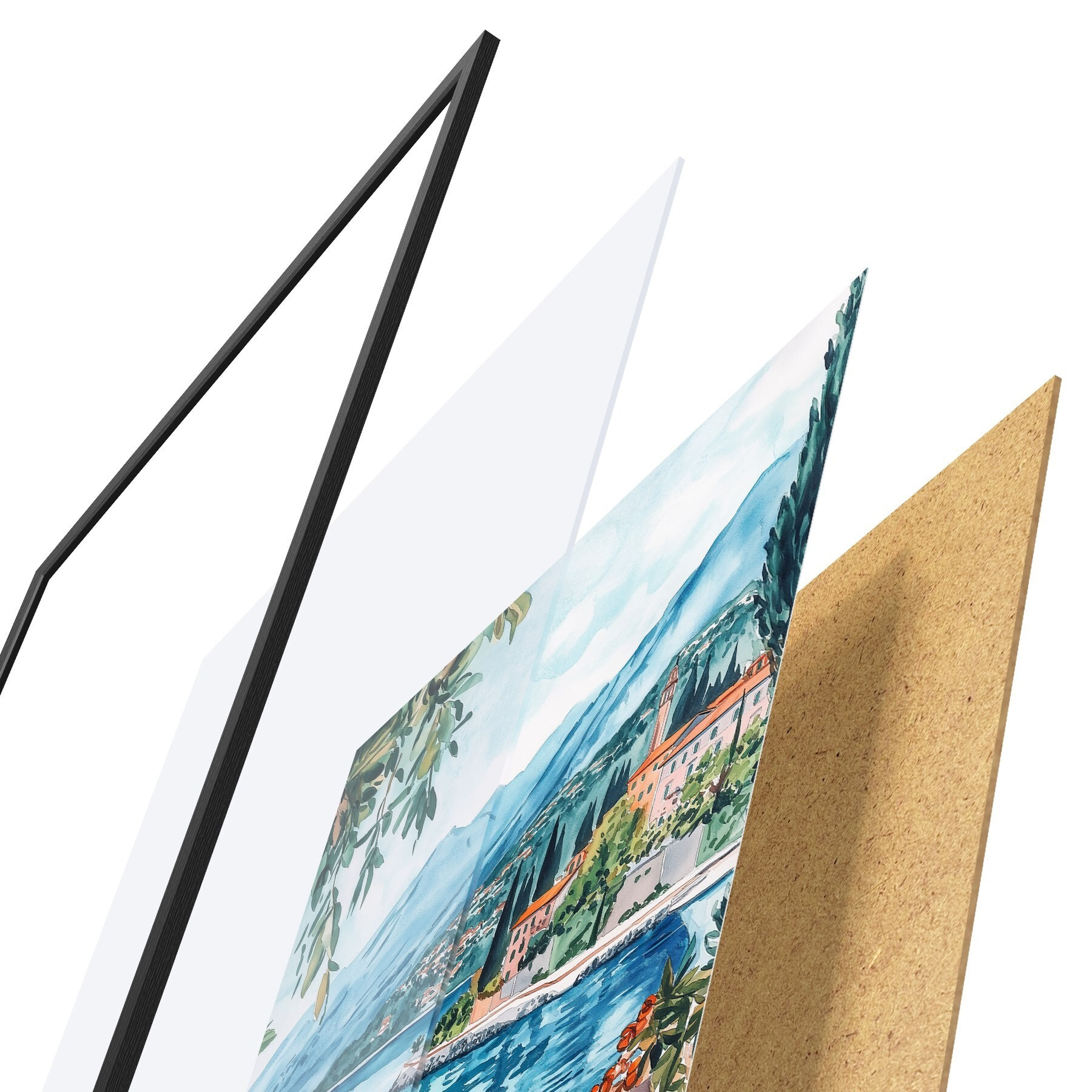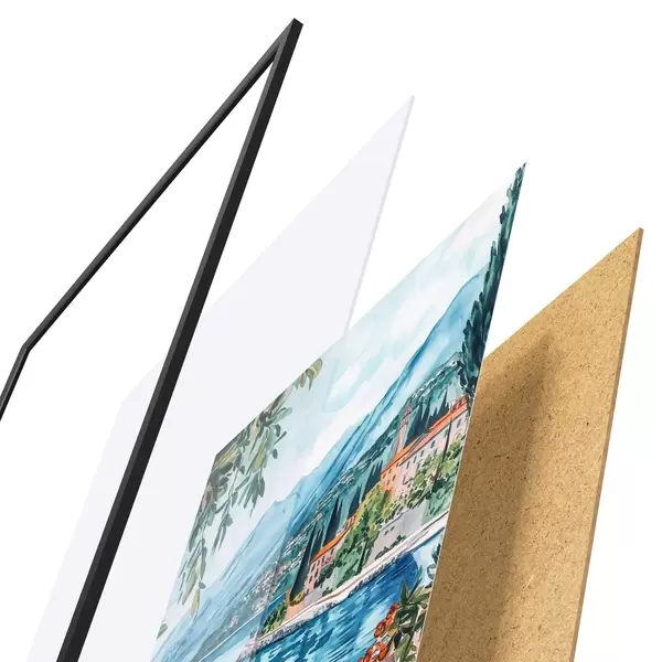 Plakāts sastāv no rāmja, pleksstikla, iespiestā attēla un skaidu plātnes pamatnes. Plakātu var uzreiz piekarināt pie sienas, pateicoties aizmugurē esošajiem stiprinājumiem.