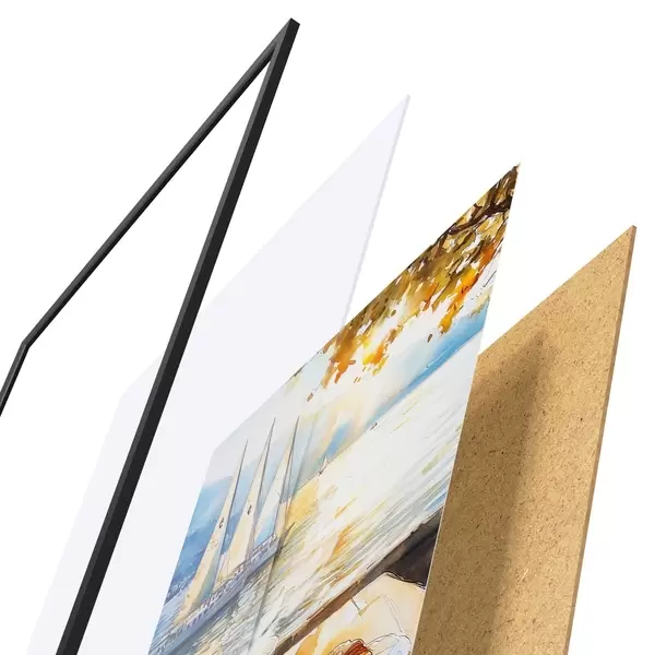 Plakāts sastāv no rāmja, pleksstikla, iespiestā attēla un skaidu plātnes pamatnes. Plakātu var uzreiz piekarināt pie sienas, pateicoties aizmugurē esošajiem stiprinājumiem.
