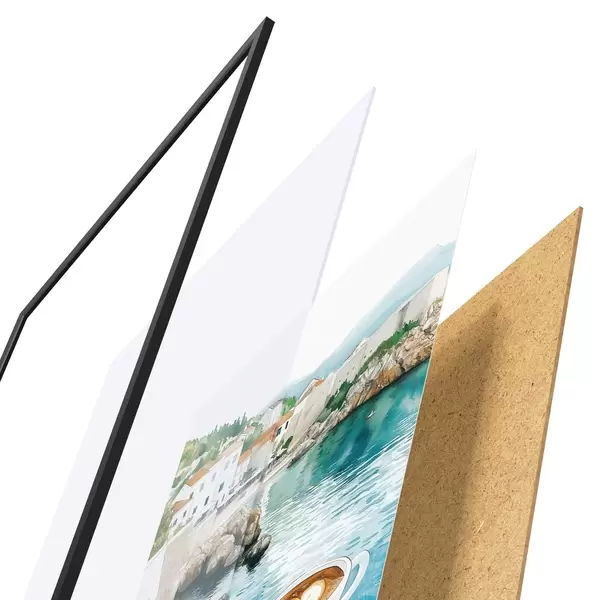 Plakāts sastāv no rāmja, pleksstikla, iespiestā attēla un skaidu plātnes pamatnes. Plakātu var uzreiz piekarināt pie sienas, pateicoties aizmugurē esošajiem stiprinājumiem.