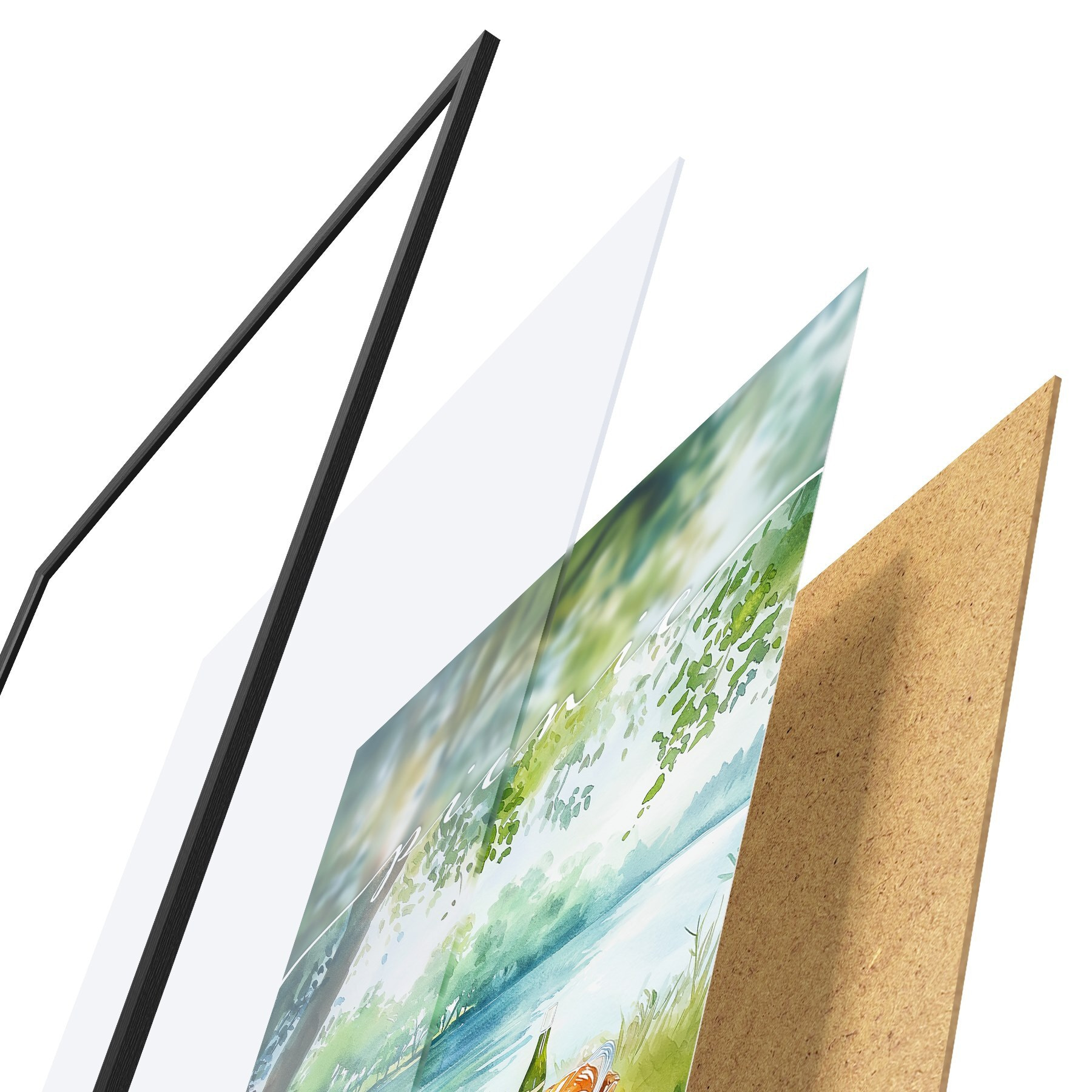 Plakāts sastāv no rāmja, pleksstikla, iespiestā attēla un skaidu plātnes pamatnes. Plakātu var uzreiz piekarināt pie sienas, pateicoties aizmugurē esošajiem stiprinājumiem.
