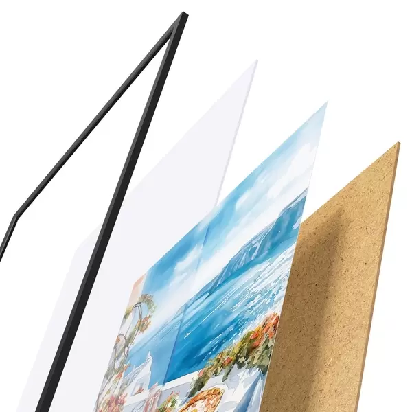 Plakāts sastāv no rāmja, pleksstikla, iespiestā attēla un skaidu plātnes pamatnes. Plakātu var uzreiz piekarināt pie sienas, pateicoties aizmugurē esošajiem stiprinājumiem.