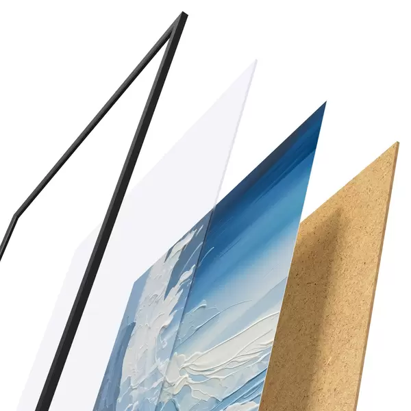 Plakāts sastāv no rāmja, pleksstikla, iespiestā attēla un skaidu plātnes pamatnes. Plakātu var uzreiz piekarināt pie sienas, pateicoties aizmugurē esošajiem stiprinājumiem.
