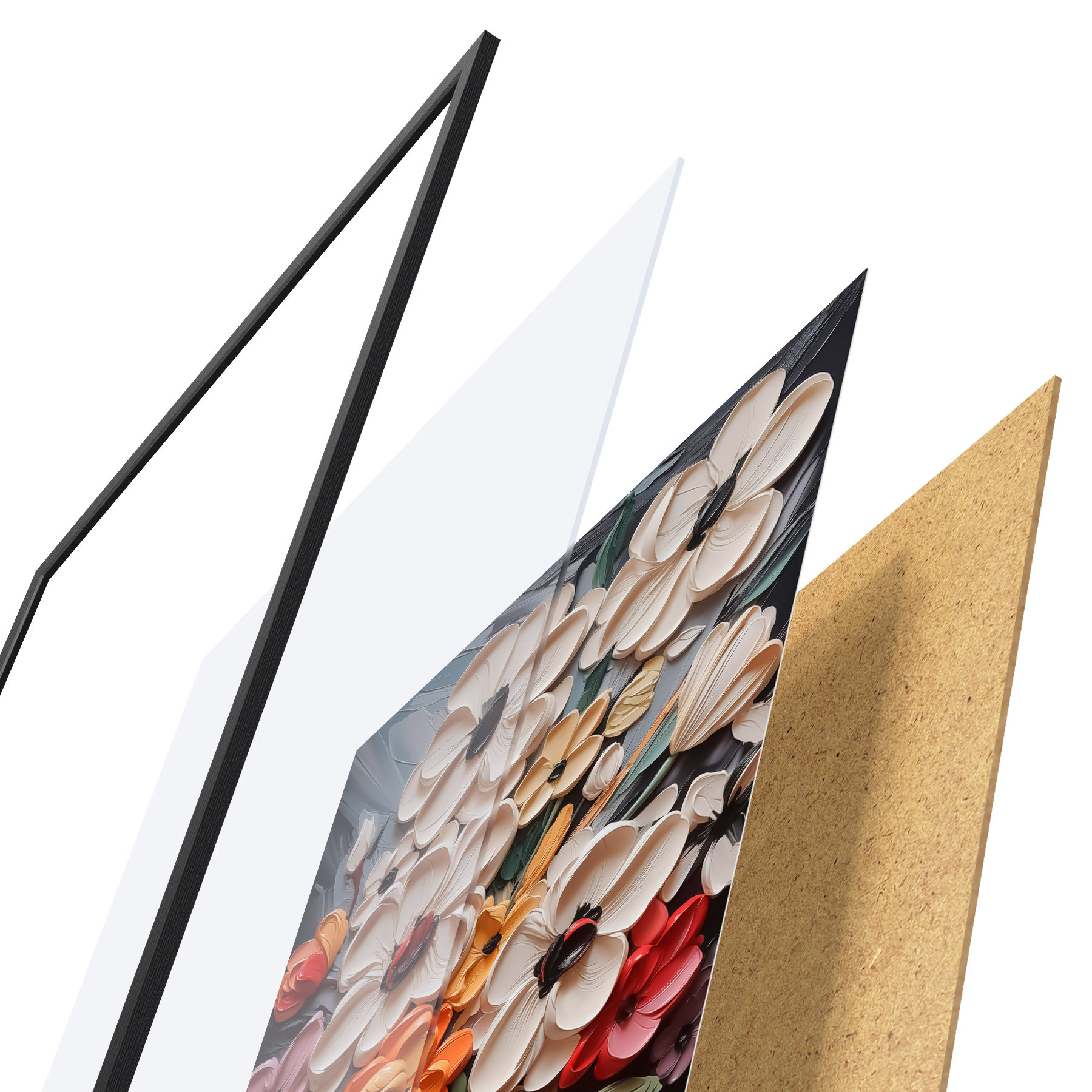 Plakāts sastāv no rāmja, pleksstikla, iespiestā attēla un skaidu plātnes pamatnes. Plakātu var uzreiz piekarināt pie sienas, pateicoties aizmugurē esošajiem stiprinājumiem.