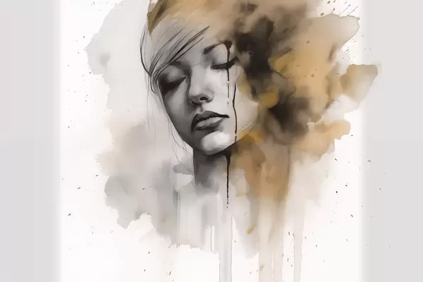 Plakāts Meitenes portrets akvareļa tehnikā ar abstraktām ēnām Nr f42474