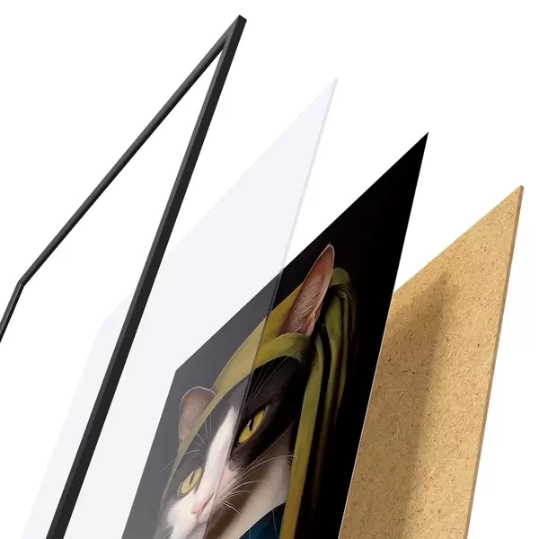 Plakāts sastāv no rāmja, pleksstikla, iespiestā attēla un skaidu plātnes pamatnes. Plakātu var uzreiz piekarināt pie sienas, pateicoties aizmugurē esošajiem stiprinājumiem.