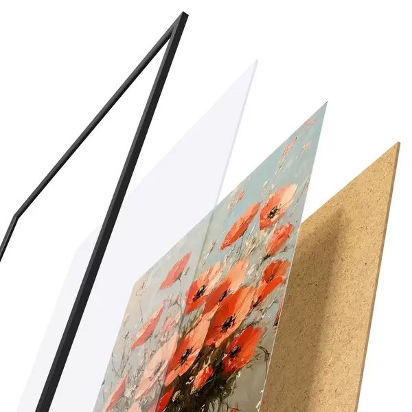 Plakāts sastāv no rāmja, pleksstikla, iespiestā attēla un skaidu plātnes pamatnes. Plakātu var uzreiz piekarināt pie sienas, pateicoties aizmugurē esošajiem stiprinājumiem.