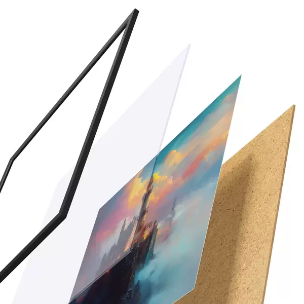 Plakāts sastāv no rāmja, pleksstikla, iespiestā attēla un skaidu plātnes pamatnes. Plakātu var uzreiz piekarināt pie sienas, pateicoties aizmugurē esošajiem stiprinājumiem.