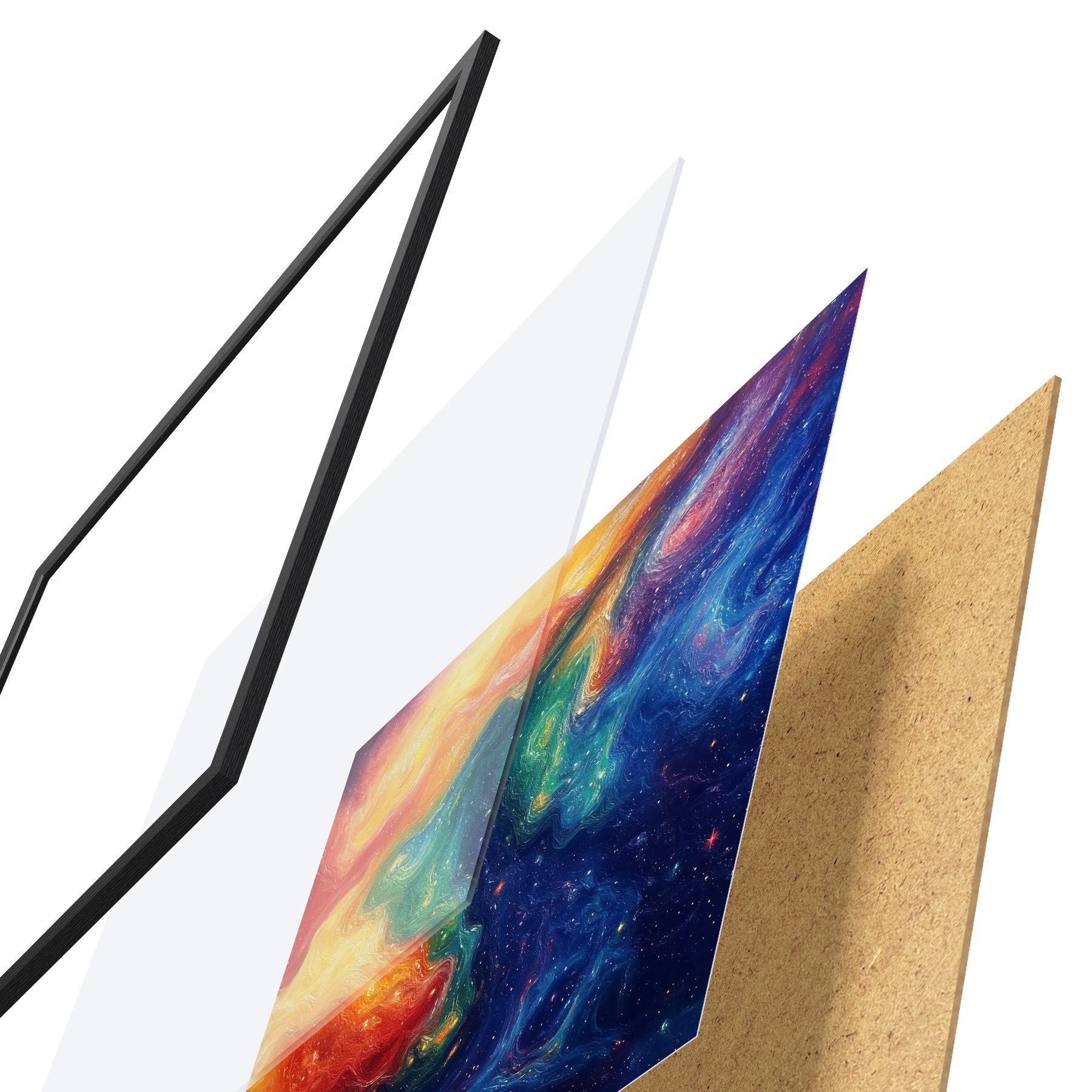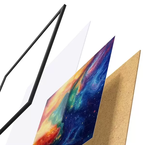 Plakāts sastāv no rāmja, pleksstikla, iespiestā attēla un skaidu plātnes pamatnes. Plakātu var uzreiz piekarināt pie sienas, pateicoties aizmugurē esošajiem stiprinājumiem.