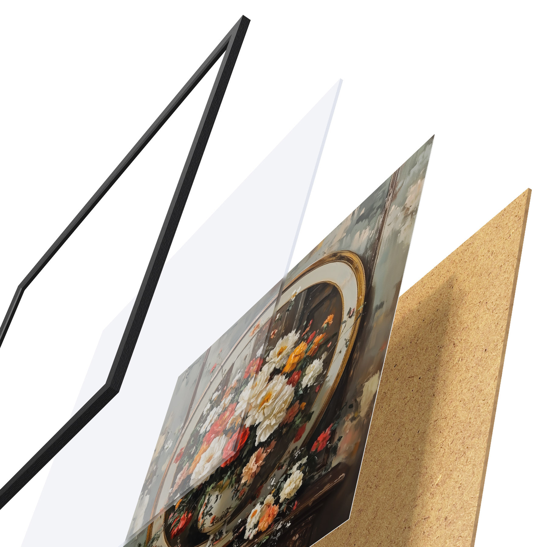 Plakāts sastāv no rāmja, pleksstikla, iespiestā attēla un skaidu plātnes pamatnes. Plakātu var uzreiz piekarināt pie sienas, pateicoties aizmugurē esošajiem stiprinājumiem.