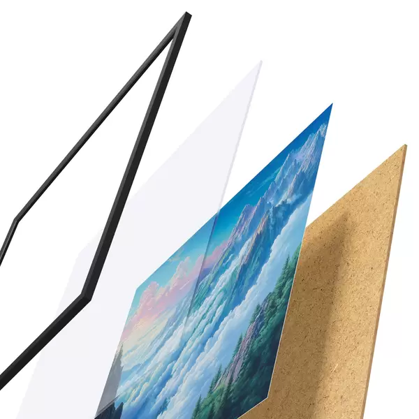 Plakāts sastāv no rāmja, pleksstikla, iespiestā attēla un skaidu plātnes pamatnes. Plakātu var uzreiz piekarināt pie sienas, pateicoties aizmugurē esošajiem stiprinājumiem.