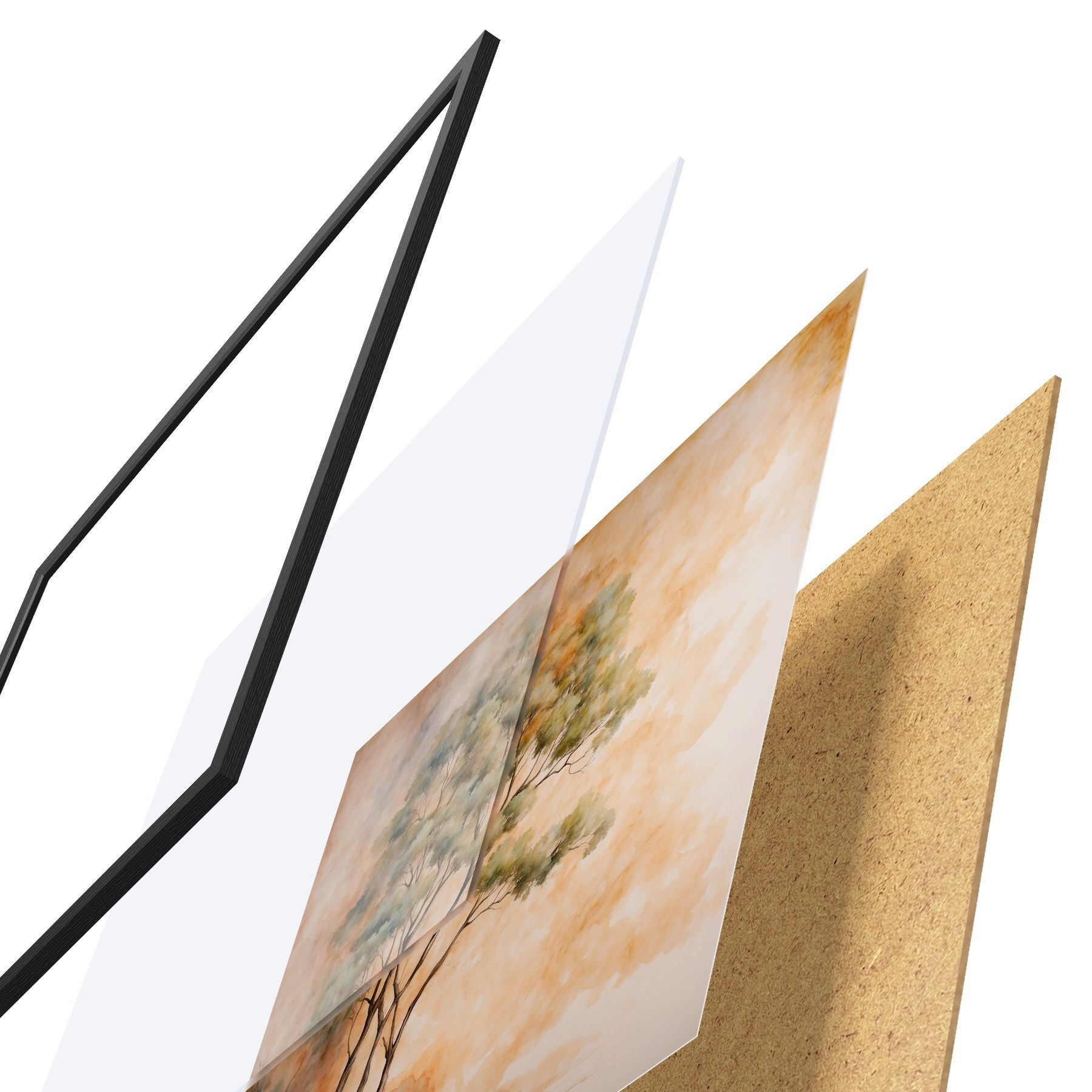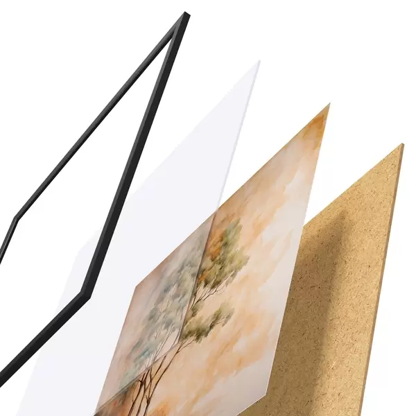 Plakāts Koks uz oranžā un baltā fona akvareļglezniecības stilā f42514