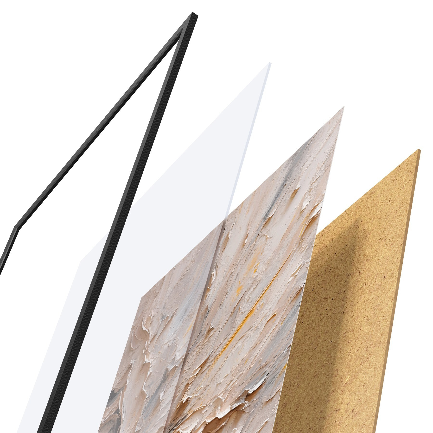 Plakāts sastāv no rāmja, pleksstikla, iespiestā attēla un skaidu plātnes pamatnes. Plakātu var uzreiz piekarināt pie sienas, pateicoties aizmugurē esošajiem stiprinājumiem.