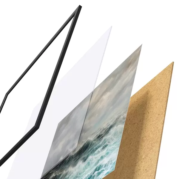 Plakāts sastāv no rāmja, pleksstikla, iespiestā attēla un skaidu plātnes pamatnes. Plakātu var uzreiz piekarināt pie sienas, pateicoties aizmugurē esošajiem stiprinājumiem.