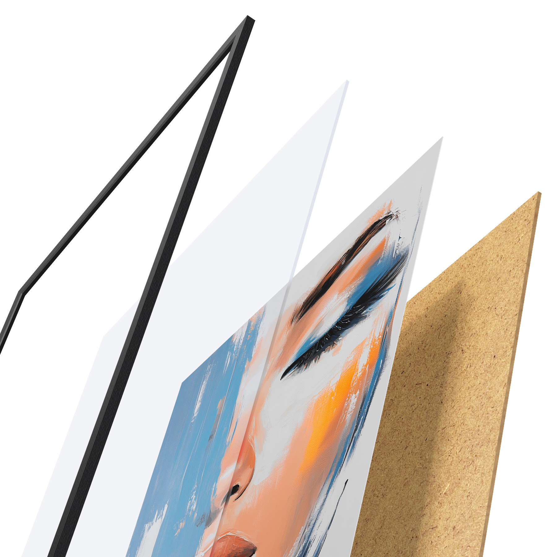 Plakāts sastāv no rāmja, pleksstikla, iespiestā attēla un skaidu plātnes pamatnes. Plakātu var uzreiz piekarināt pie sienas, pateicoties aizmugurē esošajiem stiprinājumiem.