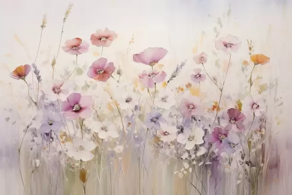 SākumlapaPlakātu katalogsPlakāti ziediPlakāts Pļava ar akvareļu ziediem maigos rozā, violetos un baltos toņos, kas rada viegluma un harmonijas atmosfēru. Nr f42557