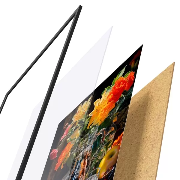 Plakāts sastāv no rāmja, pleksstikla, iespiestā attēla un skaidu plātnes pamatnes. Plakātu var uzreiz piekarināt pie sienas, pateicoties aizmugurē esošajiem stiprinājumiem.