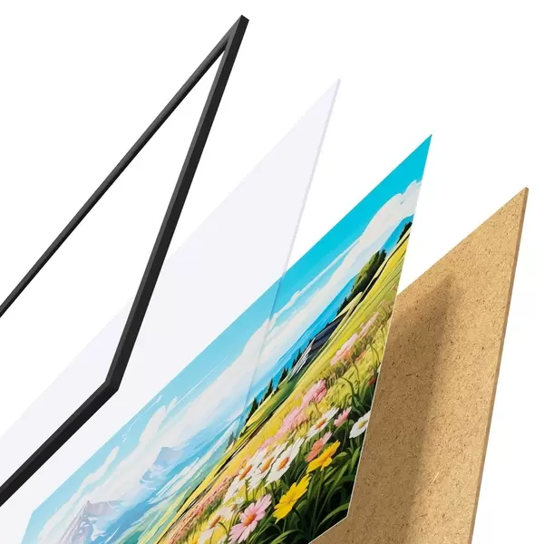 Plakāts sastāv no rāmja, pleksstikla, iespiestā attēla un skaidu plātnes pamatnes. Plakātu var uzreiz piekarināt pie sienas, pateicoties aizmugurē esošajiem stiprinājumiem.