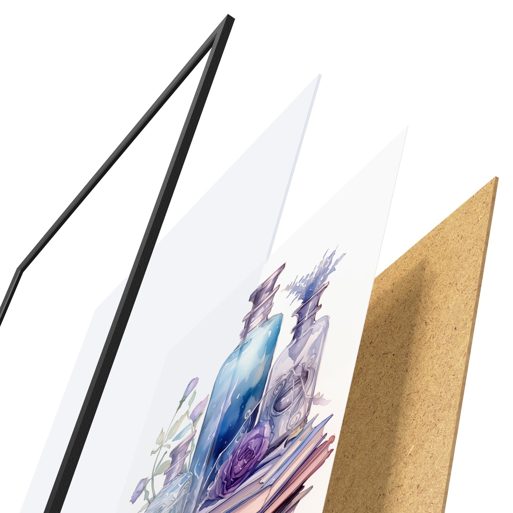 Plakāts sastāv no rāmja, pleksstikla, iespiestā attēla un skaidu plātnes pamatnes. Plakātu var uzreiz piekarināt pie sienas, pateicoties aizmugurē esošajiem stiprinājumiem.