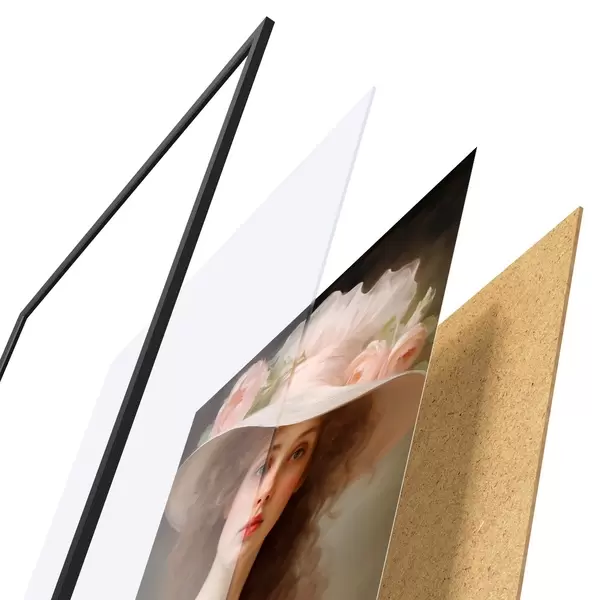 Plakāts sastāv no rāmja, pleksstikla, iespiestā attēla un skaidu plātnes pamatnes. Plakātu var uzreiz piekarināt pie sienas, pateicoties aizmugurē esošajiem stiprinājumiem.