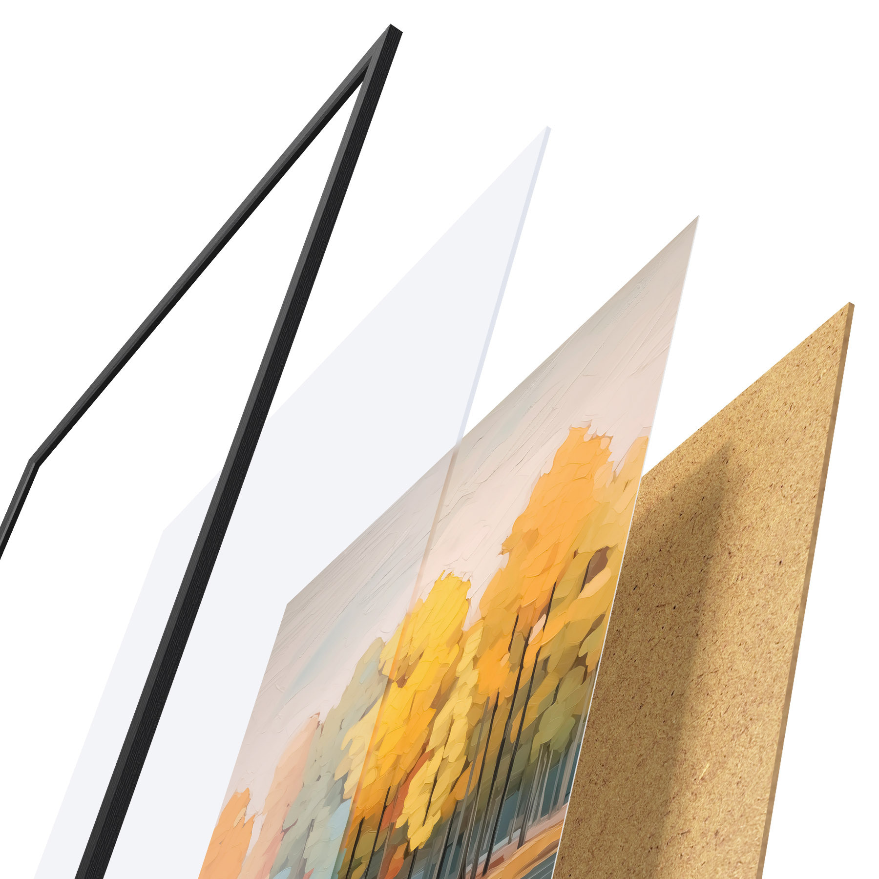 Plakāts sastāv no rāmja, pleksstikla, iespiestā attēla un skaidu plātnes pamatnes. Plakātu var uzreiz piekarināt pie sienas, pateicoties aizmugurē esošajiem stiprinājumiem.