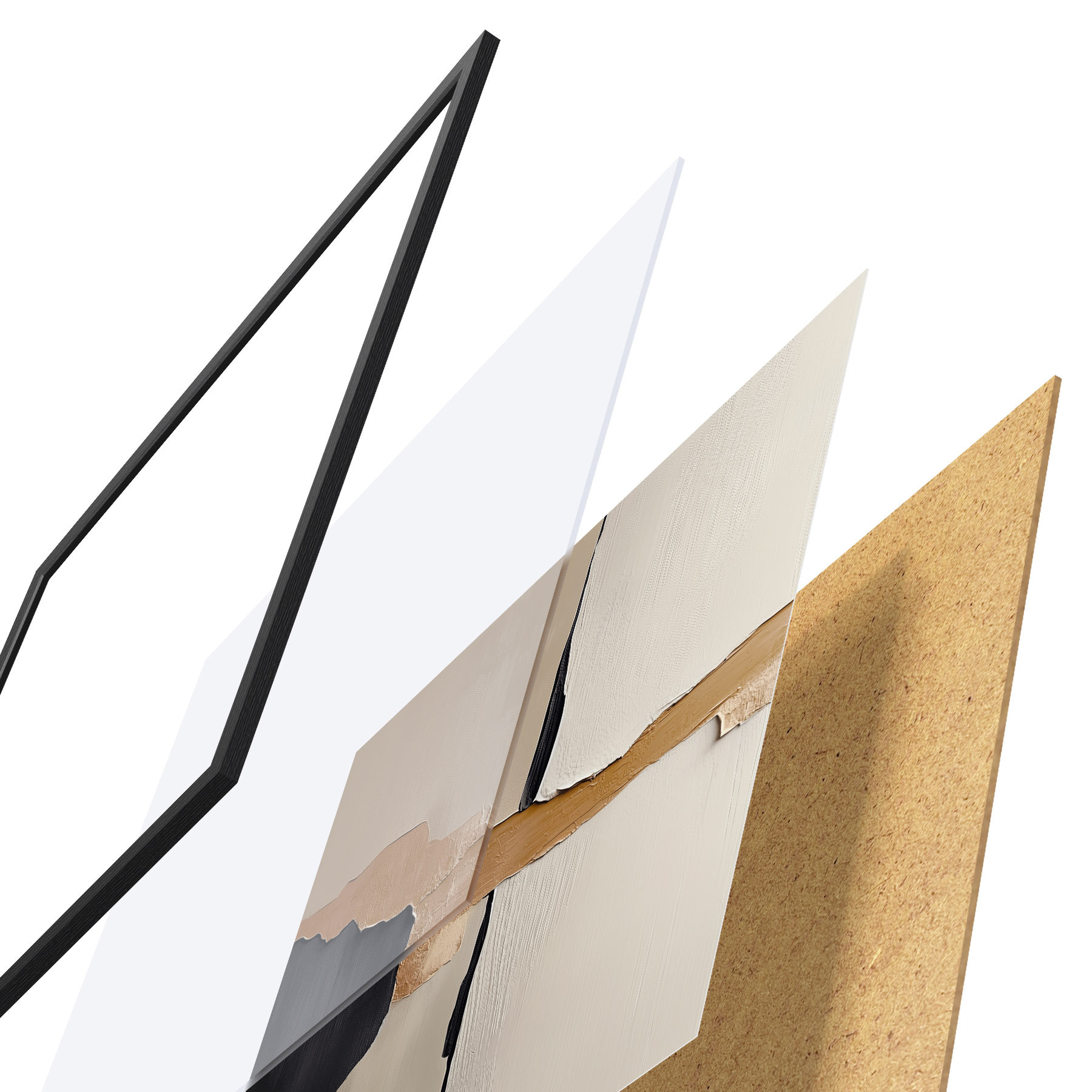 Plakāts sastāv no rāmja, pleksstikla, iespiestā attēla un skaidu plātnes pamatnes. Plakātu var uzreiz piekarināt pie sienas, pateicoties aizmugurē esošajiem stiprinājumiem.