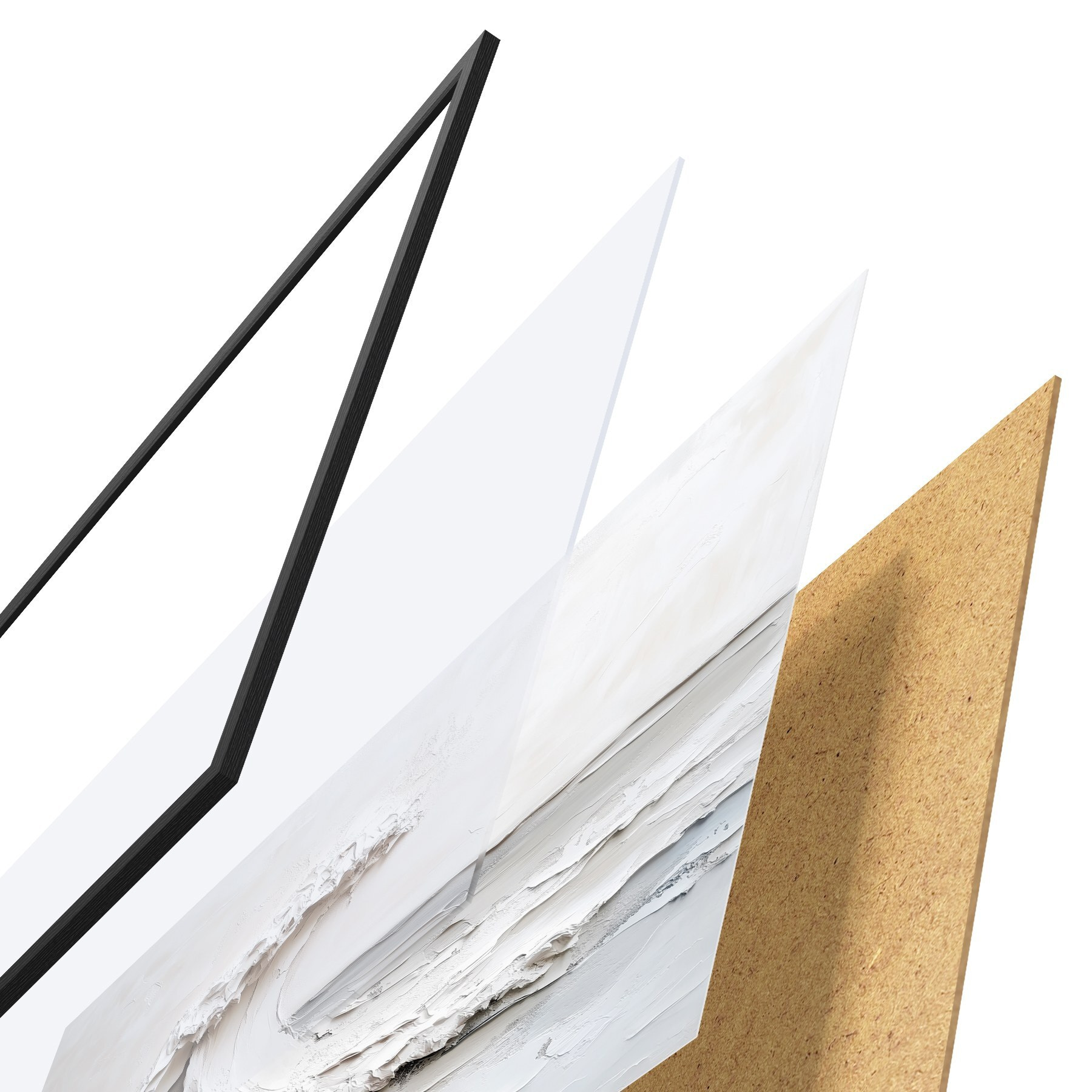Plakāts sastāv no rāmja, pleksstikla, iespiestā attēla un skaidu plātnes pamatnes. Plakātu var uzreiz piekarināt pie sienas, pateicoties aizmugurē esošajiem stiprinājumiem.