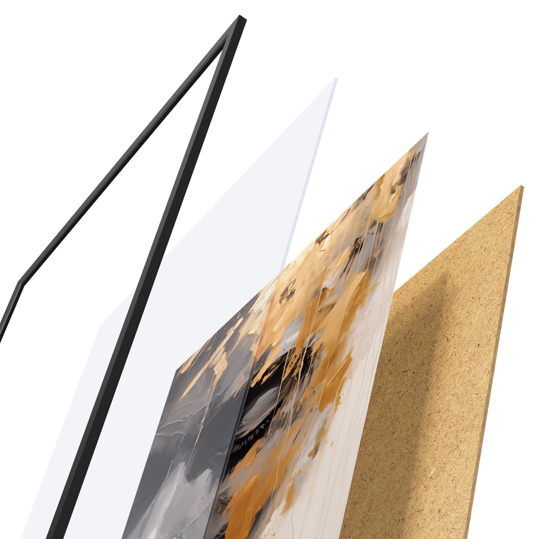 Plakāts sastāv no rāmja, pleksstikla, iespiestā attēla un skaidu plātnes pamatnes. Plakātu var uzreiz piekarināt pie sienas, pateicoties aizmugurē esošajiem stiprinājumiem.