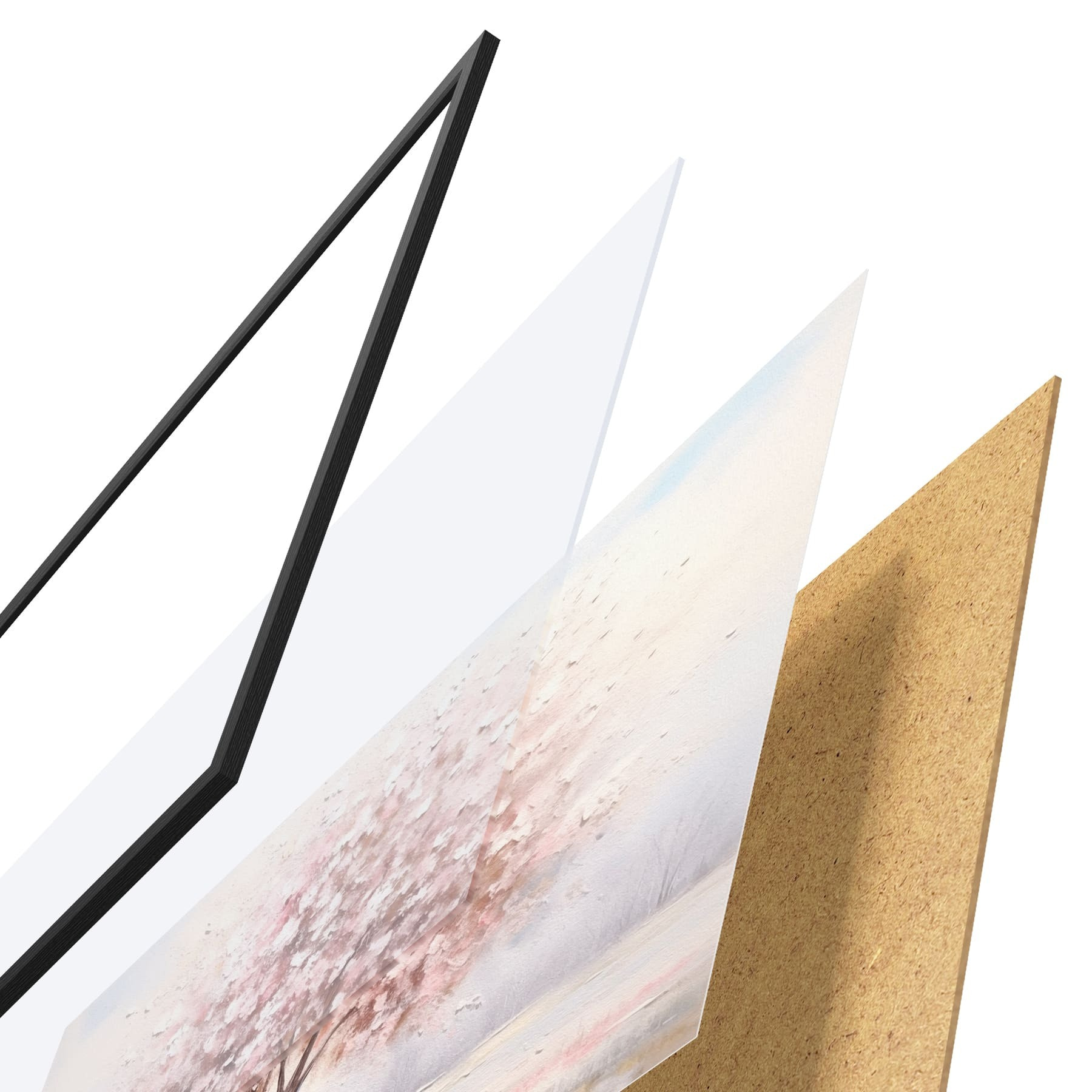 Plakāts sastāv no rāmja, pleksstikla, iespiestā attēla un skaidu plātnes pamatnes. Plakātu var uzreiz piekarināt pie sienas, pateicoties aizmugurē esošajiem stiprinājumiem.