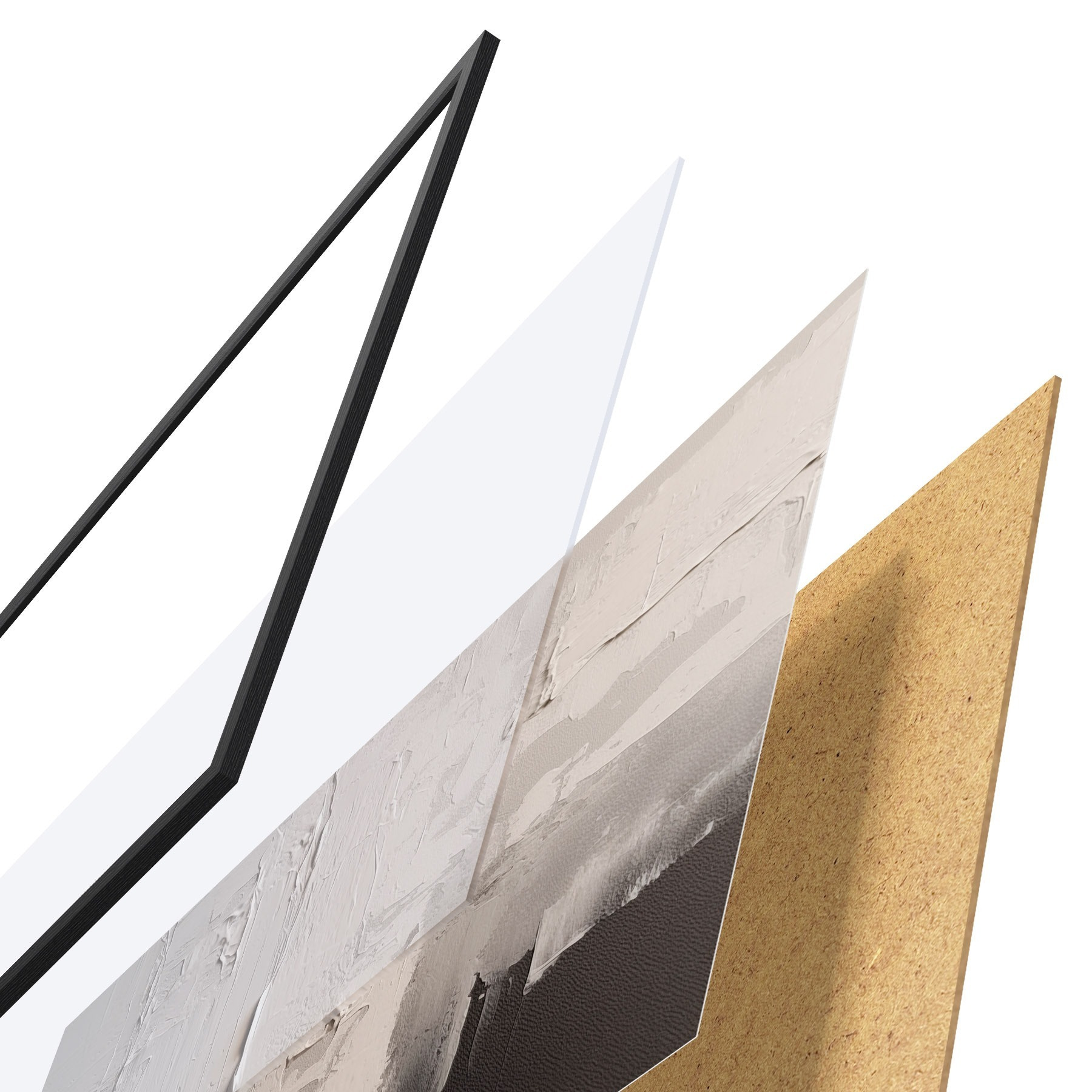Plakāts sastāv no rāmja, pleksstikla, iespiestā attēla un skaidu plātnes pamatnes. Plakātu var uzreiz piekarināt pie sienas, pateicoties aizmugurē esošajiem stiprinājumiem.