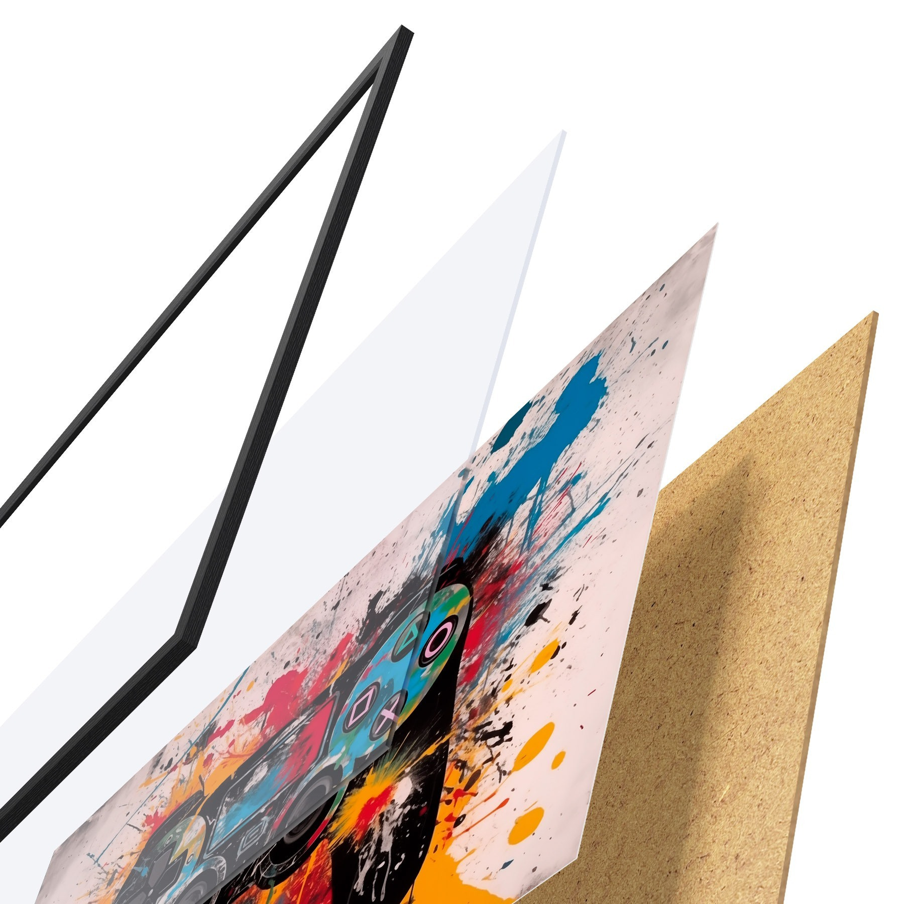 Plakāts sastāv no rāmja, pleksstikla, iespiestā attēla un skaidu plātnes pamatnes. Plakātu var uzreiz piekarināt pie sienas, pateicoties aizmugurē esošajiem stiprinājumiem.