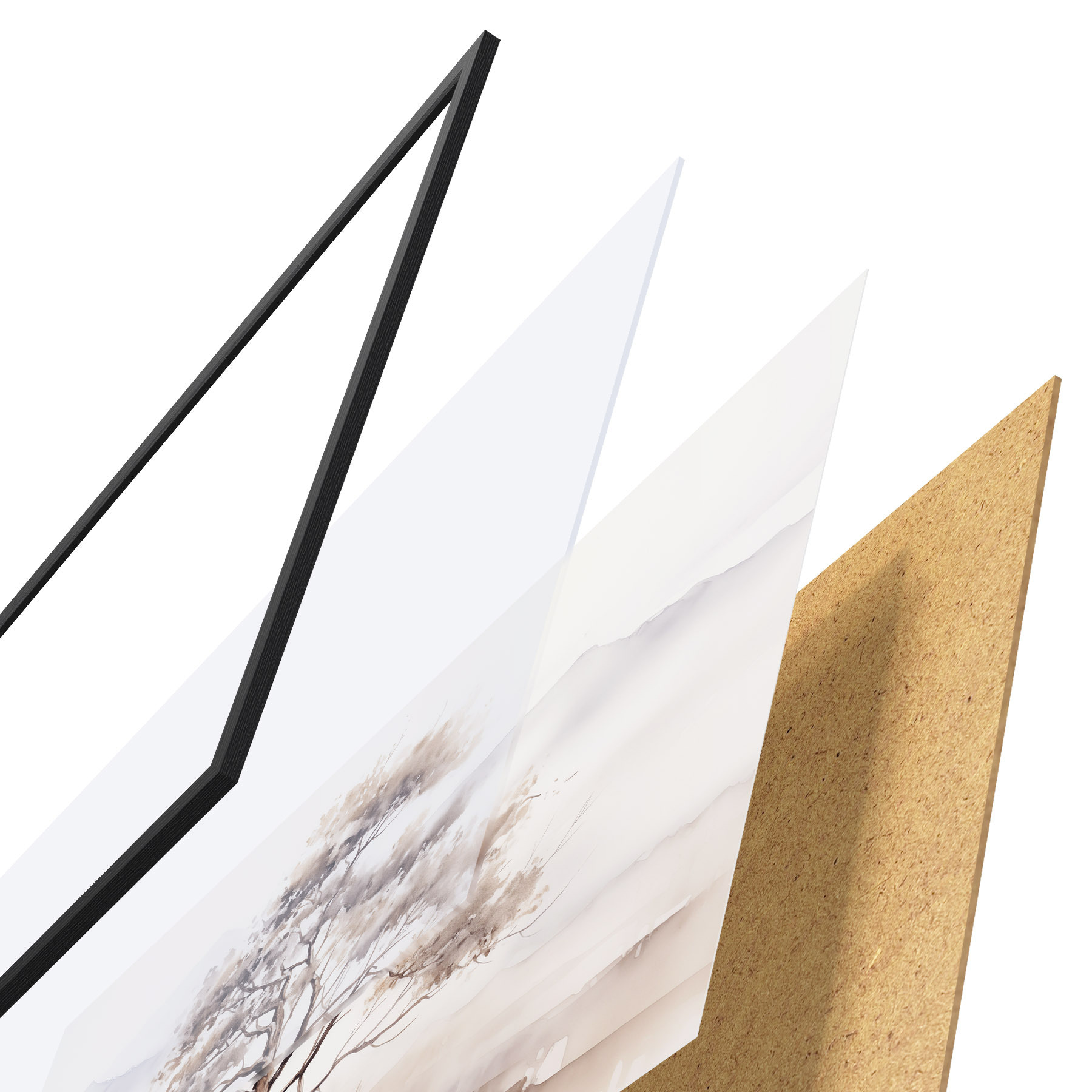 Plakāts sastāv no rāmja, pleksstikla, iespiestā attēla un skaidu plātnes pamatnes. Plakātu var uzreiz piekarināt pie sienas, pateicoties aizmugurē esošajiem stiprinājumiem.