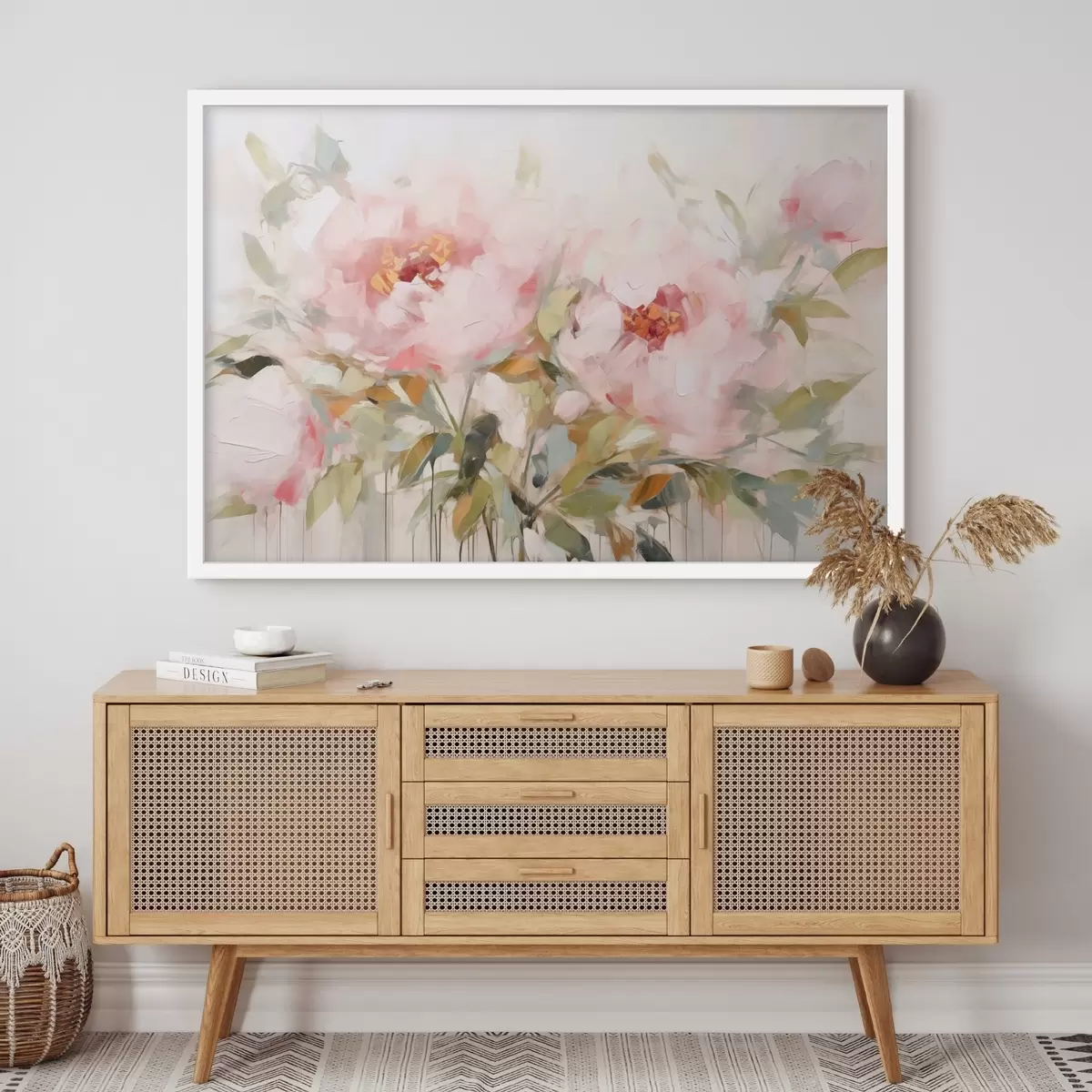 SākumlapaPlakātu katalogsPlakāti ziediPlakāts Eļļas glezna, kas imitē lielas rozā peonijas ar mīkstiem ziedlapiņām un dzelteniem centriem, ko ieskauj zaļas lapas Nr f42720