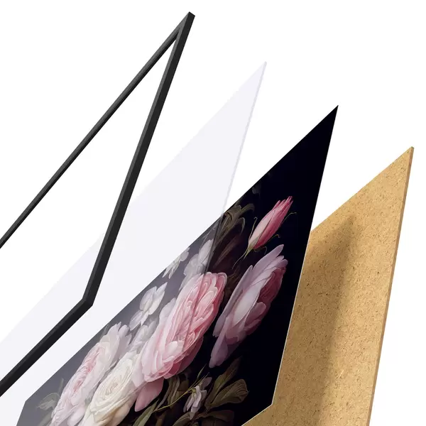 Plakāts sastāv no rāmja, pleksstikla, iespiestā attēla un skaidu plātnes pamatnes. Plakātu var uzreiz piekarināt pie sienas, pateicoties aizmugurē esošajiem stiprinājumiem.