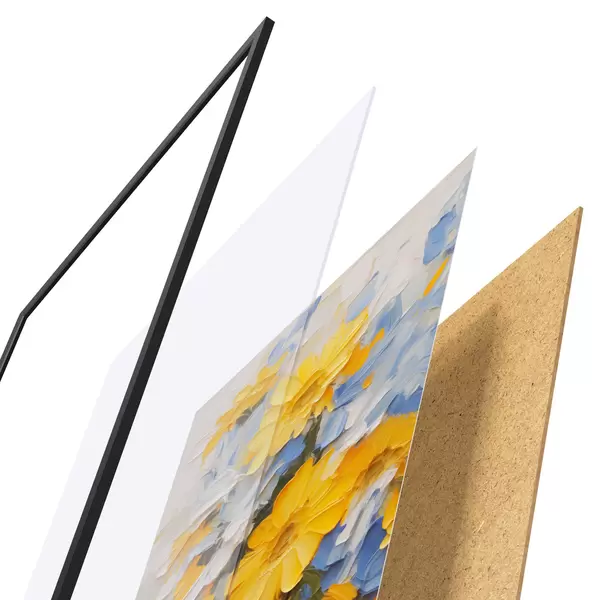 Plakāts sastāv no rāmja, pleksstikla, iespiestā attēla un skaidu plātnes pamatnes. Plakātu var uzreiz piekarināt pie sienas, pateicoties aizmugurē esošajiem stiprinājumiem.