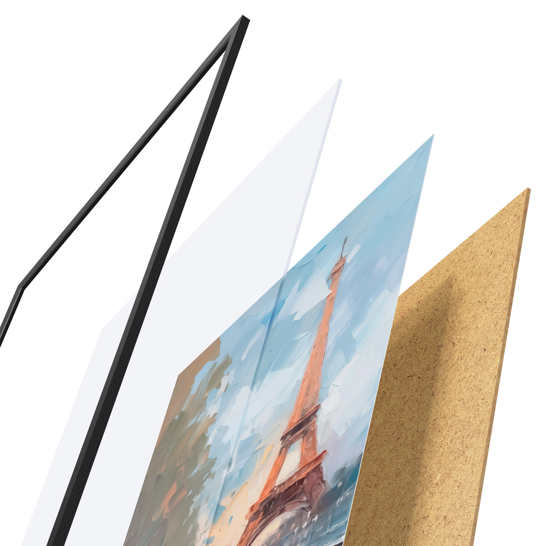 Plakāts sastāv no rāmja, pleksstikla, iespiestā attēla un skaidu plātnes pamatnes. Plakātu var uzreiz piekarināt pie sienas, pateicoties aizmugurē esošajiem stiprinājumiem.