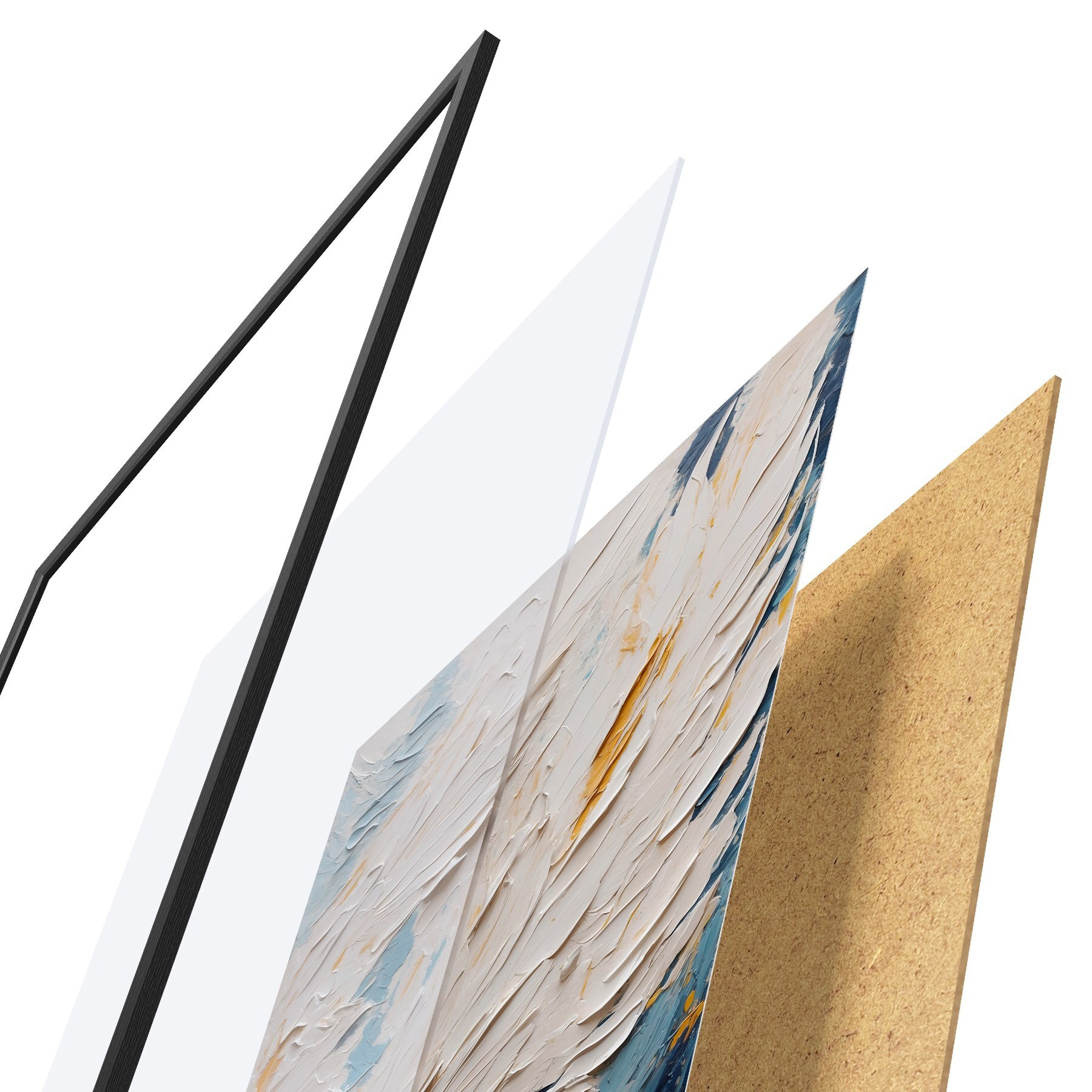 Plakāts sastāv no rāmja, pleksstikla, iespiestā attēla un skaidu plātnes pamatnes. Plakātu var uzreiz piekarināt pie sienas, pateicoties aizmugurē esošajiem stiprinājumiem.