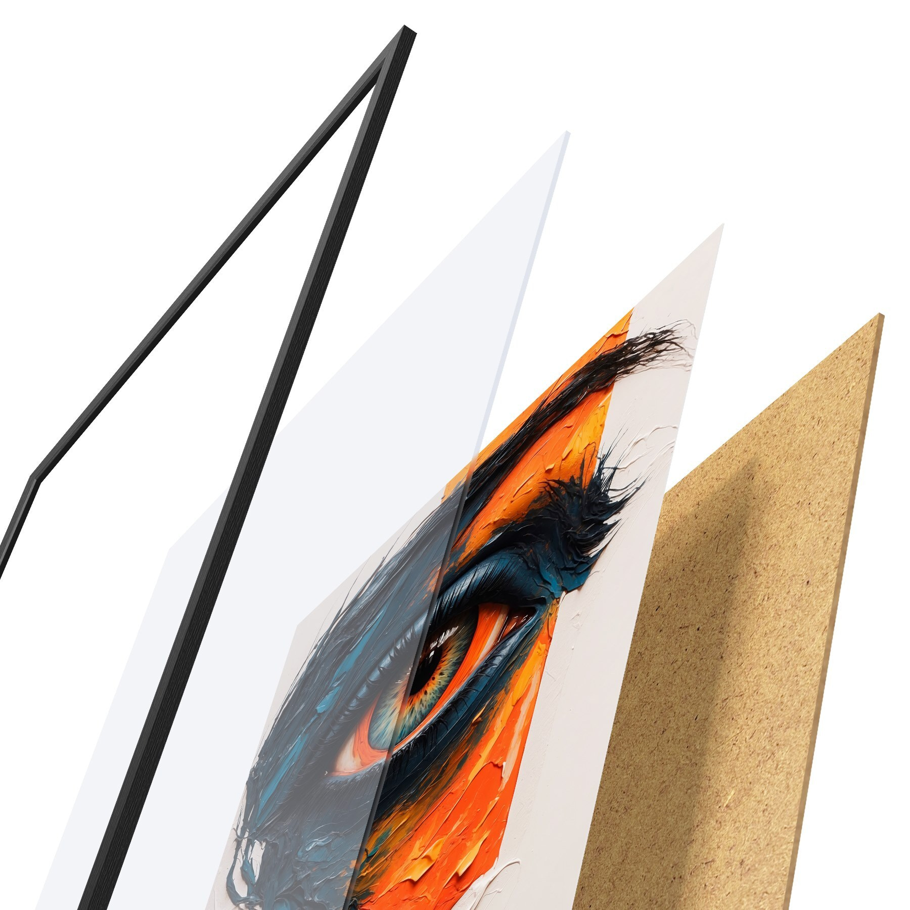 Plakāts sastāv no rāmja, pleksstikla, iespiestā attēla un skaidu plātnes pamatnes. Plakātu var uzreiz piekarināt pie sienas, pateicoties aizmugurē esošajiem stiprinājumiem.