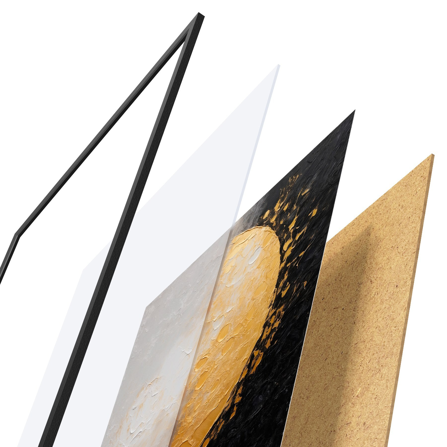 Plakāts sastāv no rāmja, pleksstikla, iespiestā attēla un skaidu plātnes pamatnes. Plakātu var uzreiz piekarināt pie sienas, pateicoties aizmugurē esošajiem stiprinājumiem.