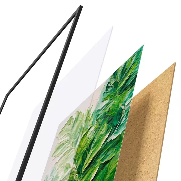 Plakāts sastāv no rāmja, pleksstikla, iespiestā attēla un skaidu plātnes pamatnes. Plakātu var uzreiz piekarināt pie sienas, pateicoties aizmugurē esošajiem stiprinājumiem.