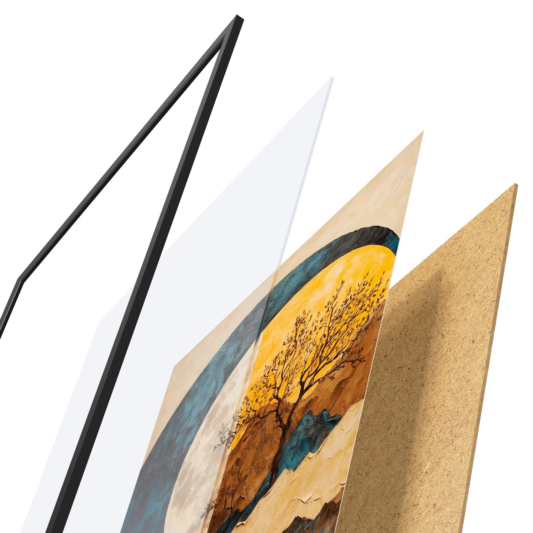 Plakāts sastāv no rāmja, pleksstikla, iespiestā attēla un skaidu plātnes pamatnes. Plakātu var uzreiz piekarināt pie sienas, pateicoties aizmugurē esošajiem stiprinājumiem.