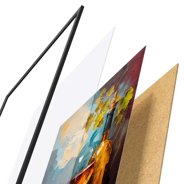 Plakāts sastāv no rāmja, pleksstikla, iespiestā attēla un skaidu plātnes pamatnes. Plakātu var uzreiz piekarināt pie sienas, pateicoties aizmugurē esošajiem stiprinājumiem.