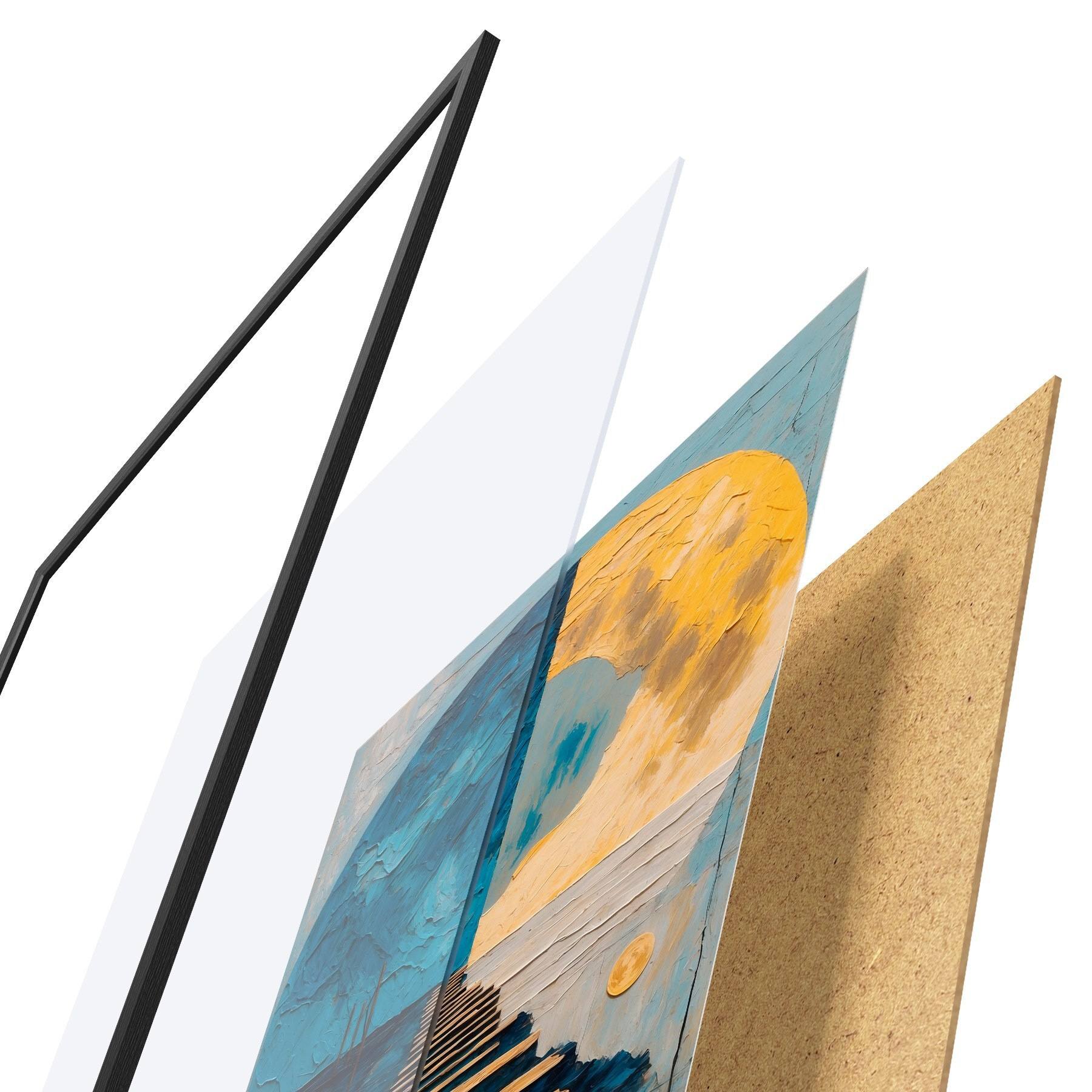 Plakāts sastāv no rāmja, pleksstikla, iespiestā attēla un skaidu plātnes pamatnes. Plakātu var uzreiz piekarināt pie sienas, pateicoties aizmugurē esošajiem stiprinājumiem.