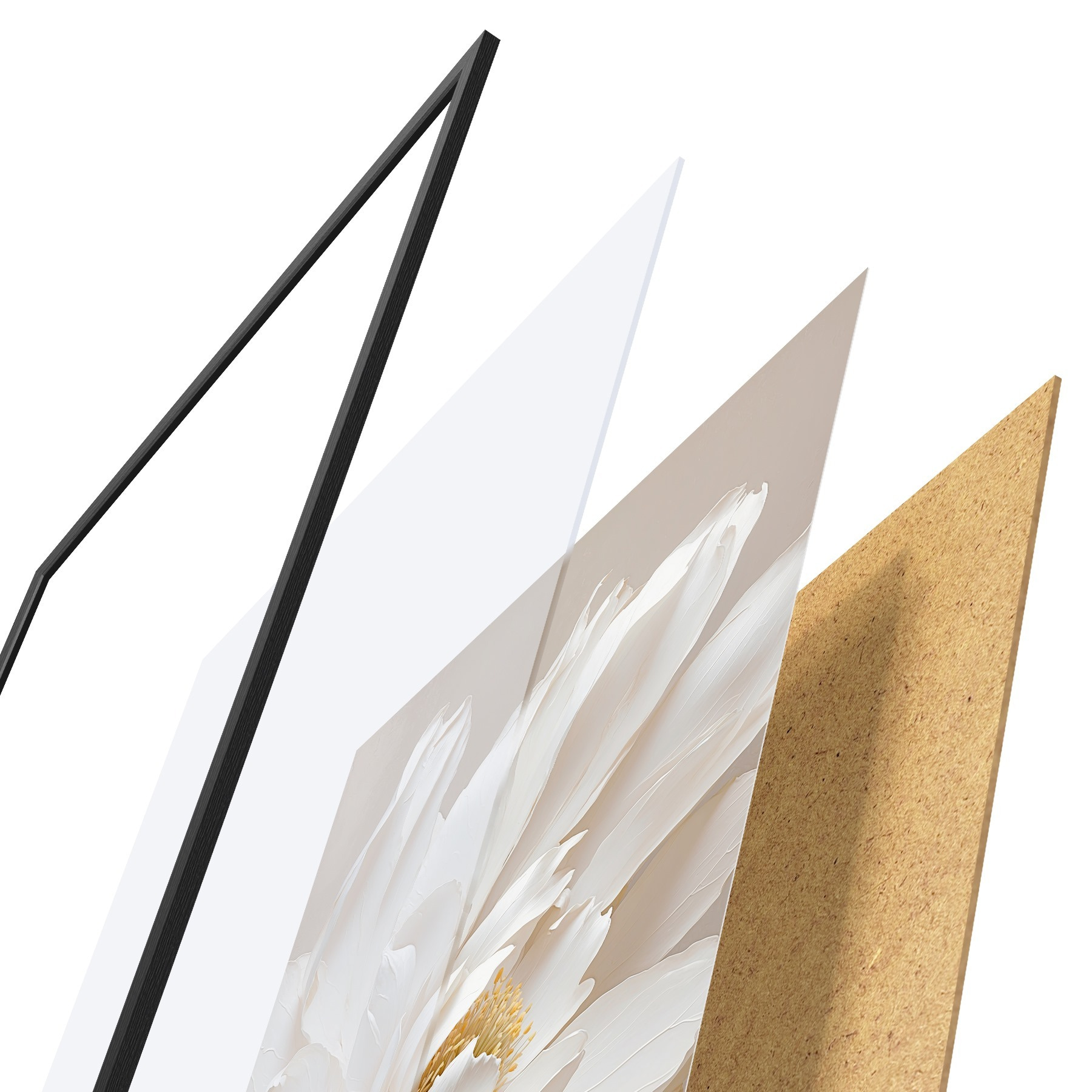 Plakāts sastāv no rāmja, pleksstikla, iespiestā attēla un skaidu plātnes pamatnes. Plakātu var uzreiz piekarināt pie sienas, pateicoties aizmugurē esošajiem stiprinājumiem.