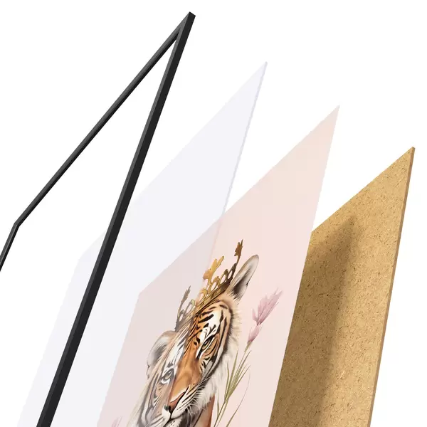 Plakāts sastāv no rāmja, pleksstikla, iespiestā attēla un skaidu plātnes pamatnes. Plakātu var uzreiz piekarināt pie sienas, pateicoties aizmugurē esošajiem stiprinājumiem.