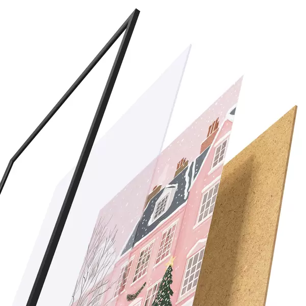 Plakāts sastāv no rāmja, pleksstikla, iespiestā attēla un skaidu plātnes pamatnes. Plakātu var uzreiz piekarināt pie sienas, pateicoties aizmugurē esošajiem stiprinājumiem.