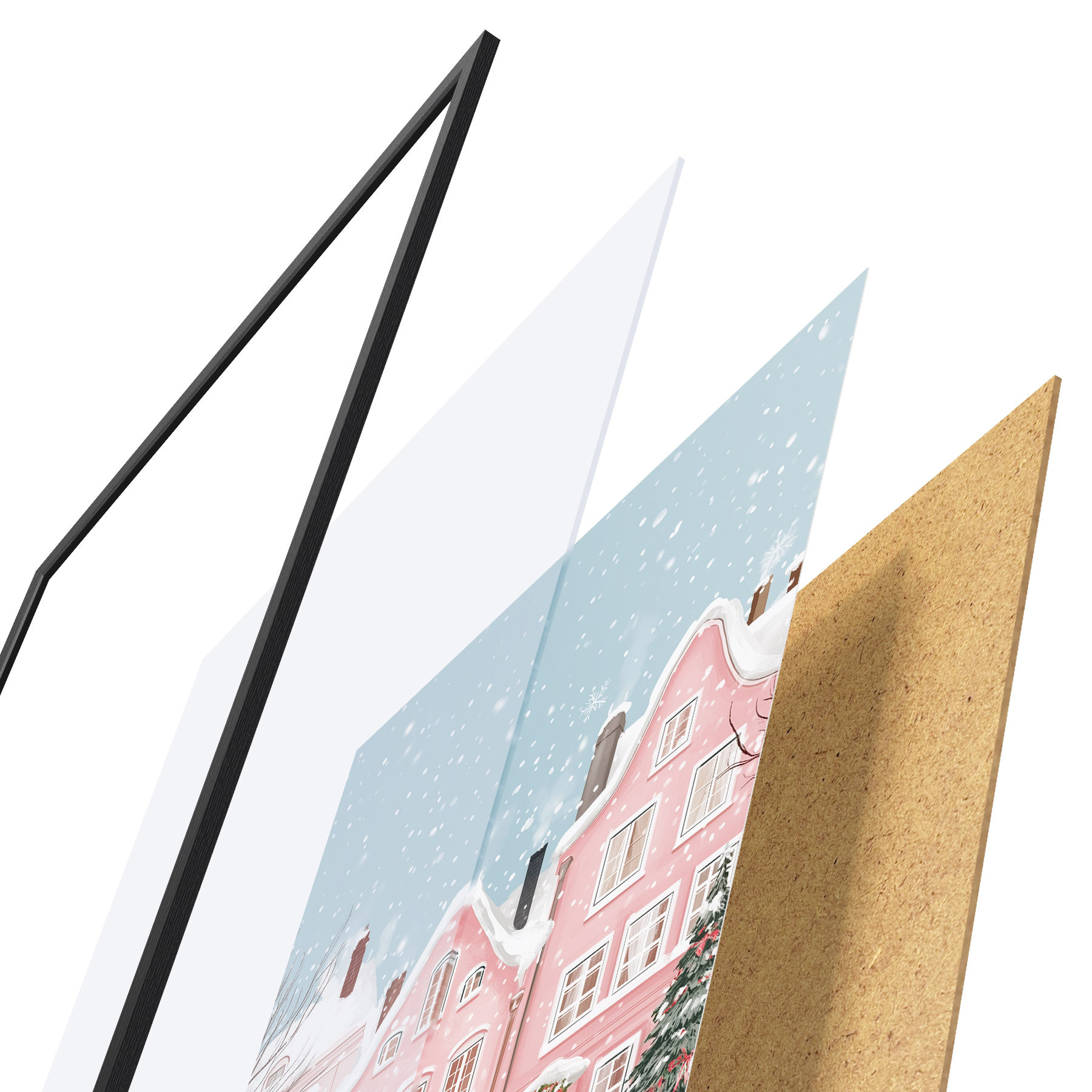 Plakāts sastāv no rāmja, pleksstikla, iespiestā attēla un skaidu plātnes pamatnes. Plakātu var uzreiz piekarināt pie sienas, pateicoties aizmugurē esošajiem stiprinājumiem.