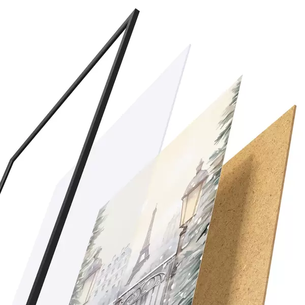 Plakāts sastāv no rāmja, pleksstikla, iespiestā attēla un skaidu plātnes pamatnes. Plakātu var uzreiz piekarināt pie sienas, pateicoties aizmugurē esošajiem stiprinājumiem.