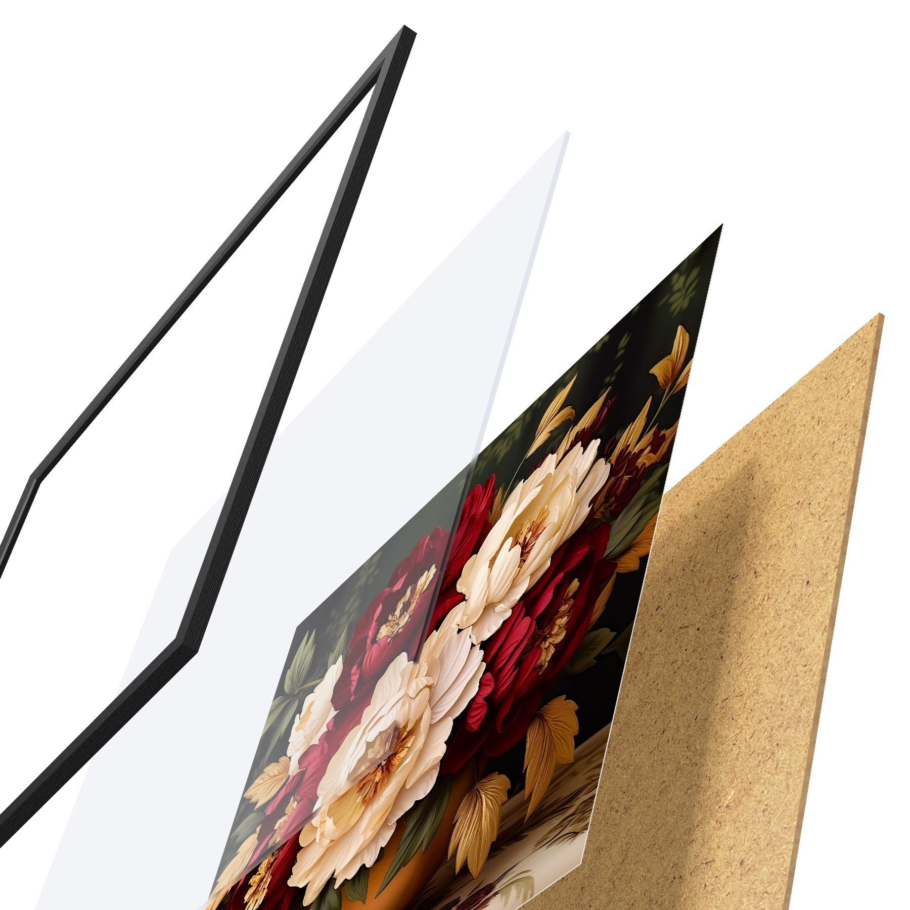 Plakāts sastāv no rāmja, pleksstikla, iespiestā attēla un skaidu plātnes pamatnes. Plakātu var uzreiz piekarināt pie sienas, pateicoties aizmugurē esošajiem stiprinājumiem.