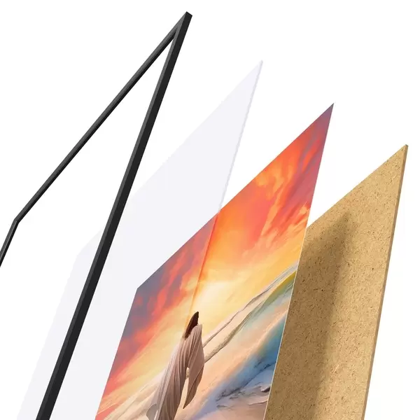 Plakāts sastāv no rāmja, pleksstikla, iespiestā attēla un skaidu plātnes pamatnes. Plakātu var uzreiz piekarināt pie sienas, pateicoties aizmugurē esošajiem stiprinājumiem.